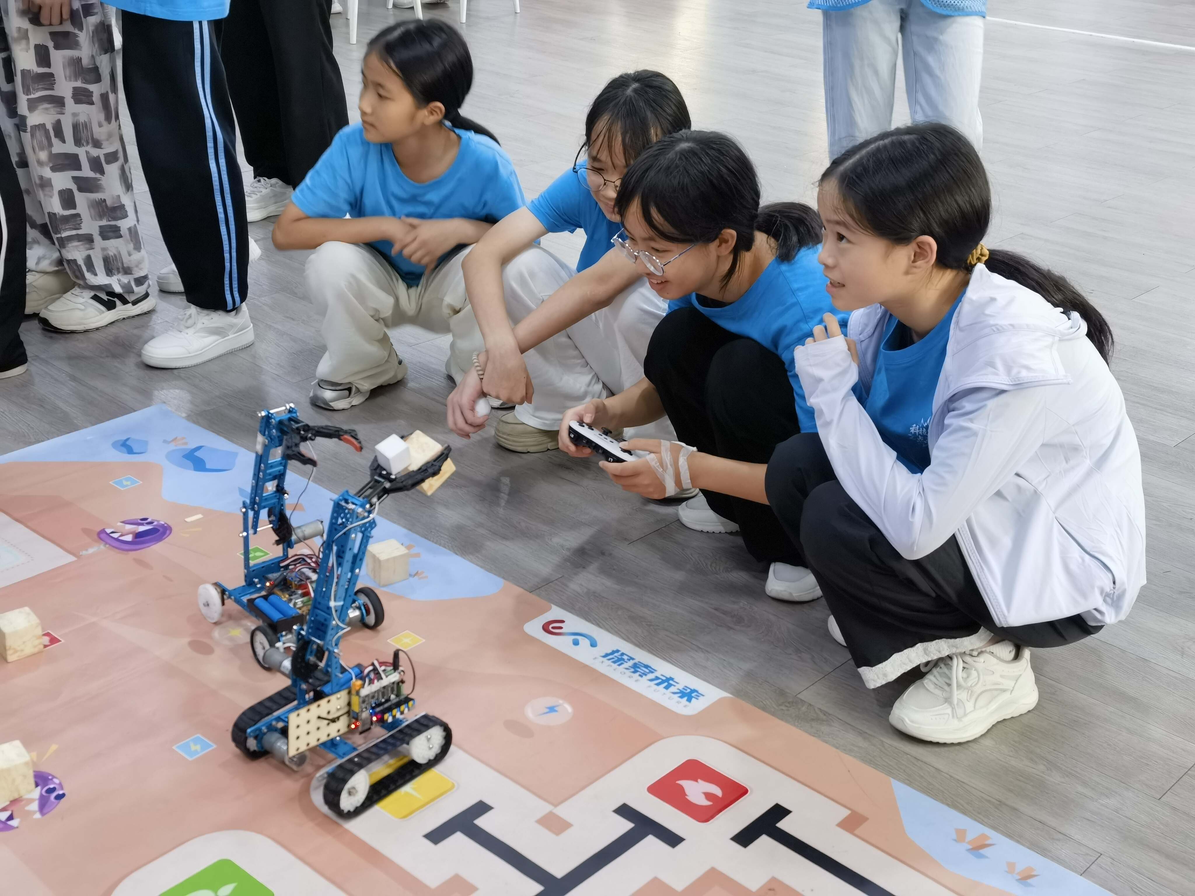 粤科图(信息所)作为夏令营重要活动站点之一,先后接待了两批师生,科普团队安排了丰富多样的互动科普体验项目,令夏令营活动精彩纷呈。在三楼科普活动现场,一系列趣味科技互动摊位让同学们沉浸在科技和科普的奇妙世界里:“趣智逻辑体验”将桌游与逻辑思维训练巧妙结合,让同学们在游戏的欢乐中探寻逻辑的规律,感受思维碰撞的火花;“机器人世界杯足球赛”的小操作员们通过操控机器人精准传球、巧妙射门,真切体会到智能控制的魅力;“超声波智能娃娃机”摊位前,当同学们看到仅凭手势就能“隔空取物”时,眼中满是惊奇与赞叹,纷纷尝试这一融合了多种电子元件的“黑科技”;“机械臂任务挑战”区,在科普老师的耐心细致指导下,同学们操控机械臂完成抓取、放置等动作,在一次次尝试中对自动化技术有了更直观的认知;在“编程大挑战”中,同学们运用图形化编程工具完成任务,在实践中轻松掌握编程逻辑;“移动雕刻工坊”则让大家见识到了激光技术的神奇,了解其在多领域的应用,同学们排起长龙“定制”心仪的文创产品;“AI棋艺争锋”也同样备受瞩目,棋艺爱好者在此与机器人展开智慧对决,感受人工智能的独特魅力;3D打印机正在不断创造惊喜,一件件精美的3D打印作品,充分彰显了科技的精妙与无限可能;而《打开天宫空间站》《三国演义》等3D立体图书,带领大家走进了奇妙的阅读世界。